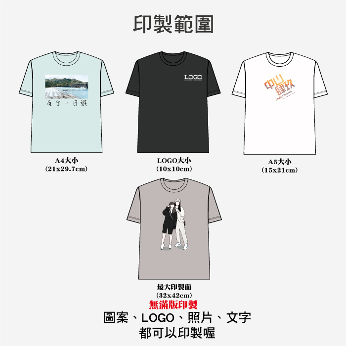 A4大小, A5大小, LOGO大小, 最大印製面(32*42cm)